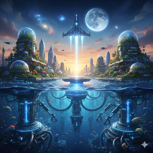 海洋城市的打造亦然。初期我們或許先建立「麻雀雖小,五臟俱全」的**「草履蟲海洋城市」**。儘管規模微小,卻是人類跨入海洋世界的第一步。隨著科技與理論的完全到位,這將成為「藍天海洋城市」崛起的關鍵轉折點。